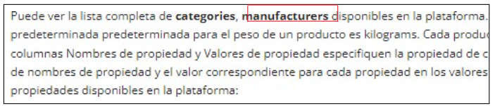 Nombre de la marca del producto tal cual aparece en el listado. Se pueden visualizar las marcas activas en la pestaña de “Importar Productos” de shopadmin.