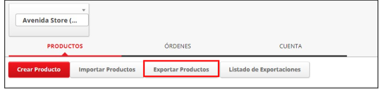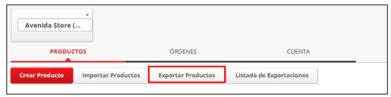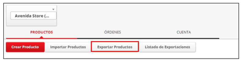 Primero, vamos a realizar una exportación de nuestro catálogo presionando el botón “Exportar Productos” en la pestaña de “Productos” de ShopAdmin.