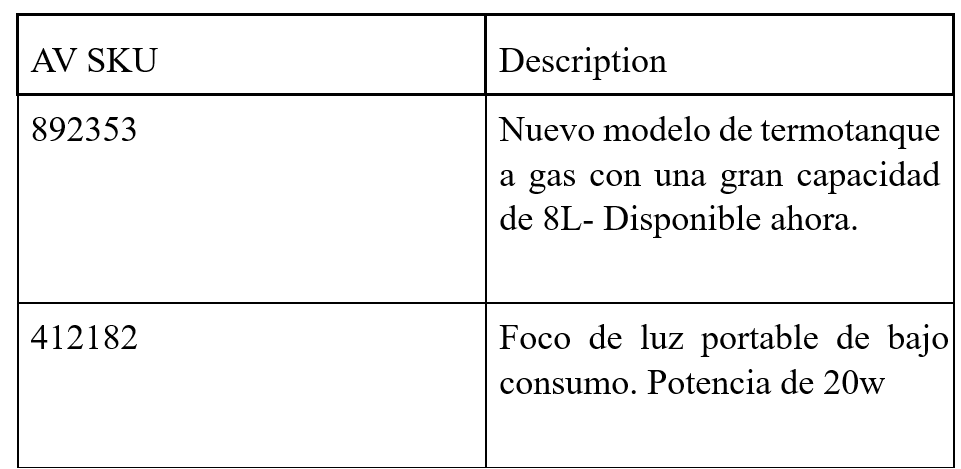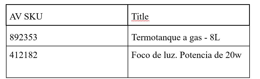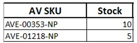 - En base al export, eliminaremos todas las columnas a excepción de “SKU Avenida” y “Stock”. A “SKU Avenida” la renombramos como “AV SKU”.